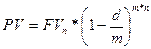 Если сравнивать между собой дисконтирование по простой и сложной учетным ставкам, то, для лица, осуществляющего предварительное (антисипативное) начисление процентов: Ø более выгодным является дисконтирование по сложной учетной ставке, если срок учета менее одного года; Ø более выгодным является дисконтирование по простой учетной ставке, если срок учета превышает один год; Ø дисконтирование в обоих случаях дает один и тот же результат, если срок учета равен одному году. Если дисконтирование происходит m раз в году и задана сложная годовая учетная ставка d, то определение стоимости капитала, учтенного за n лет при m –кратном дисконтировании в течение года определяется по формуле: