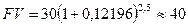 Проверим полученный результат. Предположим в банк помещен вклад в размере 30 тыс. руб. на 2,5 года под 12,196% годовых сложных процентов. Тогда наращенная сумма будет равна: