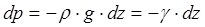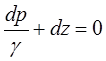 Выражение в скобках есть полный дифференциал гидростатического давления, тогда