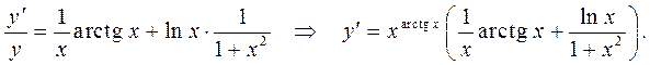 Рассмотренная операция называется логарифмическим дифференциро-ванием. Формулу (5) можно удобно запомнить как сумму производных от показательной и степенной функций. Пример 4. Найти Прологарифмируем Дифференцируя полученное равенство, окончательно имеем