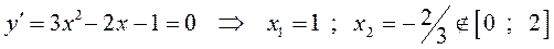 Вычисляем значения функции в критической точке х = 1 и на кон-цах рассматриваемого отрезка