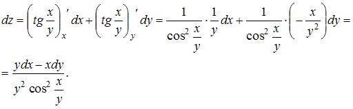 Решение: Полный дифференциал функции нескольких переменных равен сумме произведений частных производных этой функции на дифференциалы соответствующих независимых переменных, то есть . Тогда
