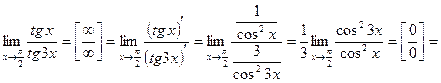 Р е ш е н и е. Воспользуемся правилом Лопиталя: