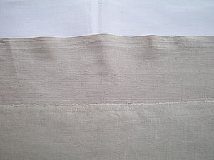 Первый раз кофе был гранулированный, во второй - порошок. Я не выбирала специально, так получилось. Задумывала окрасить бязь и один кусочек ситца в более светлый цвет, а второй кусочек ситца - в более темный. Но окрас темного кусочка мне не понравился: пятна, разводы. В результате я выполоскала все три кусочка. Ткань окрасилась хорошо, в ровный оттенок - бязь чуть темнее, ситец - светлее. Когда я сравнила эту ткань с остатками первого куска бязи, то выяснилось, что есть разница.