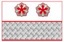| Знаки различия состоят из одного галуна серебристого цвета шириной 15 мм, окантованного кантом установленного для организации цвета по верхнему и нижнему краю. Над галунами на расстоянии 10 мм располагаются три звезды особого рисунка серебристого цвета с внутренней звездой установленного для организации цвета диаметром 25 мм. Расстояние от верхнего края шитья до нижнего края звезды 10 мм