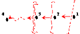 | Двойной подвижный заградительный огонь с указанием его условного наименования и номеров рубежей: сплошной линией – первые два рубежа, по которым открывается и одновременно ведется огонь, пунктиром – последующие рубежи). Длина рубежей (участков) – в масштабе карты