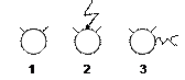 | Фугасы: 1 – неуправляемый; 2 – управляемый по радио; 3 – управляемый по проводам. У мин замедленного действия знак закрашивается черным цветом