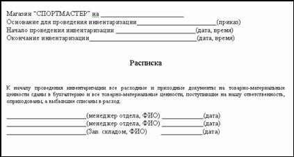 После проведения вышеописанных мероприятий берётся расписка с менеджеров отделов и заведующего складом о том, что все работы по подготовке проделаны.