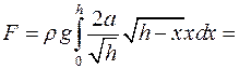 Приклад. Знайти силу тиску рідина на фігуру, обмежену вільною поверхнею рідини (тобто віссю В даному випадку
