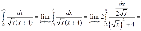 Цілком аналогічно визначається невластивий інтеграл від функції Іноді розглядається невластивий інтеграл по всій числовій прямій Приклади. Обчислити невластивий інтеграл або довести його розбіжність. а)