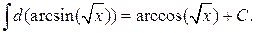 7.4.5. Множество функций {arcsin x + C } задается неопределенным интегралом вида: