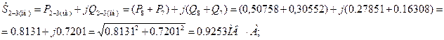 10. Определяем действительное распределение мощностей по участкам линии. Мощности на головных участках линии определяются по формулам: