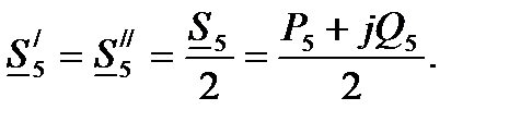 Для второго приближения следует повторить расчеты пункта 4.17, использовав результаты первого приближения. При расчете мощностей на участках ЛЭП следует использовать действительные напряжения в узлах схемы. Определив уточненное значение U7 сравнивают его с величиной, полученной в первом приближении. При достижении заданной точности расчет прекращают (расчет провести с точностью до 0.05), обычно в расчетах достаточно одного-двух уточнений. 4.18 Для второй части схемы сети (рисунок 4.2) провести расчет аналогично приведенному в п.4.17. Для преобразования схемы «разрезать» часть сети В-5-С в точке потокораздела 5 и составить соответствую расчетную схему (рисунок 4.5).