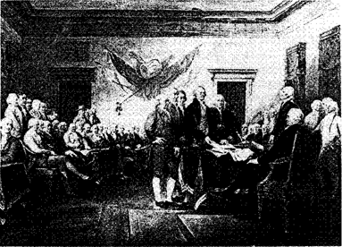 Портрет Дж. Вашингтона Лишь с 40—60 гг. XVIII в. складывается более высокая по мастерству художественная традиция, со все более своеобразным местным характером, отступающим от английских образцов. На смену таким скованным и условным портретистам, как Р. Фик или Д. Блэкберн, пришли крупнейшие живописцы колониального периода — Б. Уэст (1738— 1820) и Дж. С. Копли (1738-1815). Уэст в парадных портретах и в исторических картинах («Договор У. Пенна с индейцами», «Смерть генерала Вольфа») проявил интерес к актуальным событиям — изображению последних исторических событий в современных костюмах. Реалистические портреты Копли («Мальчик с летучей белкой») отличаются искренностью, свежестью наблюдений. Им написаны также динамические исторические полотна — «Смерть майора Пирсока» и др. Трезвый, точный реализм Копли сыграл важную роль в создании американской национальной живописной школы. Война за независимость вызвала высокий расцвет американского искусства. Крупнейший американский живописец этого периода, лучший портретист своего времени Ч. Стюарт (1755—1828) в своих реалистических портретах сочетал объективность характеристики с поэтичностью и романтикой образа (портреты Дж. Вашингтона и др.). Дж. Трамбулл (1756—1843), участник Войны за независимость, создал серию исторических полотен, изображающих боевые действия 1775—1793 («Битва при Банкерс-Хиллс), писал портреты ее участников. Наиболее известная его картина запечатлела подписание Декларации Независимости в 1776 г. («Рождение нации»}.
