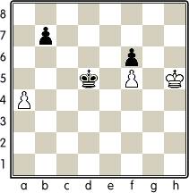 б) Когда пешка освобождает поле для двигающейся вслед за ней фигуры, а в особенности дает возможность собственному королю напасть на неприятельскую пешку. Продвижение пешки «f» с целью выигрыша пространства для надвигающегося вслед короля 1. f5 Kf7 2. Kе5 Kе7 3. f6+ Kf7 4. Kf5 Kf8! (пешка «f» сама по себе не имеет никакой будущности) 5. Kg6, и белые выигрывают пешку «h». Таким образом, движение пешки «f» имело целью оттеснить неприятельского короля для того, чтобы собственный король мог приблизиться к пешке h5. в) Когда продвижение совершается с целью пожертвования пешки. Этим путем неприятельский король отвлекается в сторону (см. диаграмму 80). Другой пример: