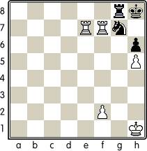 Связывание, использованное благодаря цугцвангу После знакомого уже нам пожертвования (1-й мотив), то есть после 1. Rхе5 Rхе5, последовало 2. g3! He делая этого хода, белые дали бы противнику возможность сыграть f5–f4 и высвободиться посредством Kf5. Теперь же ход 2...f4 опровергается ответом 3. g4, и черные проигрывают вследствие того, что защита ладьи возможна лишь с одного поля. Ход 2...g4 также ничего не дает. Несмотря на громадный материальный перевес, черным во избежание худшего приходится удовлетвориться ничьей, играя, как показал А. Троицкий, 2... Kg6! с последующим Kh5–g4 и f5–f4. Приведенными соображениями и примерами анализ игры против связанной фигуры можно считать, по существу, исчерпанным.