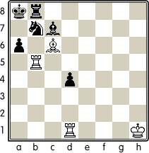 Ладья h4 связывает пешку h6 (наполовину); слон g1 связывает коня с5 (полностью). Фигуры, стоящие позади: в первом случае – ладья h7, во втором – король а7. Связанной фигурой уходить с линии связывания нельзя, так как стоящая позади фигура становится в этом случае жертвой нападения. Если неподвижность связанной фигуры абсолютна, то есть эта фигура вообще не может сделать никакого хода, то мы имеем дело с полным связыванием; если же связанная фигура может сделать ход на одно или несколько полей в направлении к связывающей, то она связана наполовину. На диаграмме 135 пешка h6 связана наполовину, так как у нее есть возможность хода h6–h5. Связанный конь всегда связан полностью. Относительно других фигур можно сказать следующее: если связанная и связывающая фигуры одноименные, то связать можно лишь наполовину. Здесь слон с6 связан только наполовину: он может ходить по диагонали c6–h1. Пешка может быть связана полностью лишь фигурой, действующей по диагонали; в случае же, если связывание происходит по вертикали, то связывающая фигура может полностью связать пешку лишь путем ее блокирования (например: белые – Rg6; черные – Kg8, п.g7). Однако такая неподвижность, в сущности, обусловлена не только связыванием, но и блокированием. Связанная фигура дает лишь мнимую защиту. Она только «делает вид», что защищает, в действительности же она парализована. Поэтому смело можно ставить свои фигуры под ее удар: все равно она не может их взять. Пример на диаграмме №118.