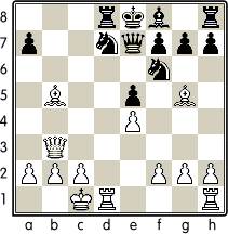 В этом положении белые могли выиграть коня посредством сдвоения ладей, например: 13. Rd2 Qе6 14. Rhd1 Be7 15. B:f6, но в распоряжении Морфи оказывается гораздо более сильный маневр.