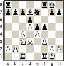 Атака против базы е4 ничего не дает: в случае f5xе4 белые могут сыграть f3хе4 (и база остается надежно защищенной), или Nс3xе4, или же Bd3xe4 с хорошей заменой пешки e4. Поэтому черные играют f5–f4, заменяя базу e4 новой – f3. Правда, и здесь белые могут успешно защищаться против подрыва g7–g5–g4xf3, но позиция белого короля все же находится под угрозой и, главное, стеснена. Таким образом, пешка f3 является более слабой, чем е4. Бывают и другие причины, в силу которых одна база является более слабой, чем другая, и поэтому перенесение атаки с одной базы на другую – не случайность, как думали Алапин и другие мастера до опубликования статьи «Соответствует ли...». Возможность такого перенесения дает еще одно оружие для борьбы против пешечной цепи. Ввиду того что эта глава грозит сделаться чрезмерно большой, мы ограничимся приведенными краткими указаниями. Перенесение атаки настолько типичный прием, что для иллюстрации его можно было бы привести бесчисленное множество партий. Мы ограничимся следующим примером: