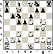 Ход черных. Как им наказать противника 14...Bb7? Здесь черные должны были сделать попытку овладеть пунктом е5, как бы опасно это ни выглядело, и сыграть просто 14...Nxе5! Во всех случаях они получали вполне удовлетворительную, а возможно, даже и лучшую игру: 15. Qg3 f6 16. Nf3 Nxf3+ 17. Qxf3 е5! 18. Qxd5? Bb7 19. Bа4+ Kе7, и черные выигрывают фигуру; или 15. Bа4+ Kе7 с угрозой Nd3+. Напротив, плохим ответом было бы 15...Bd7, потому что белые посредством 16. Bxd7+ Nfxd7 17. Nxe6! fe 18. Qxe6+ Kd8 19. Qxd5 получили бы за фигуру три пешки и сильную атаку. Но посредством 15...Kе7, как было указано выше, черные добивались отличной игры. После всего изложенного содержание партии представляется нам в следующем виде: ход 5...b6 ничего не дает для центра, вследствие чего белые заняли там сильную позицию (Nе5). Но на 12-м ходу они уделили лишь незначительное внимание пункту е5 (ключу позиции), и это при правильной игре противника могло бы привести к полной потере достигнутого преимущества. Отсюда можно видеть, какое огромное значение имеет правильная стратегия в центре.