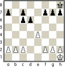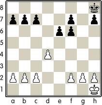 При подобной пешечной конфигурации в пешке c6 или f6 имеется некоторая компенсация за утраченный центр, ибо эта пешка воздействует на центр. Последнее сказывается в том, что белые не могут создать форпост на е5 (см. диаграмму 201). С другой стороны, грозит е6–е5, и, наконец, черные могут сыграть f6–f5,?g8, и если в ответ на это g2–g3, то h7–h5, f5–f4 и h5–h4. Другими словами, пассивная пешечная масса е6, f7, f6 может быть развернута и брошена в атаку. Слабость заключается в изолированной пешке h7. Указанной выше диверсии (Rg8, f6–f5, h7–h5) белые обычно стремятся противопоставить следующую расстановку фигур: пешки на f4, g3, h2, а кони по возможности на f3 и g2. В этом случае игра уравнивается. Однако черным очень трудно найти подходящий момент для перехода от защиты к атаке. Мы приведем несколько примеров. № 78. Французская защита