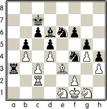 Если белые будут теперь держаться пассивно, то черные получат преимущество в результате прямой атаки: Kе7–f7–g6 с последующим f6–f5. Белым после этого придется сделать защитительный ход f2–f3, давая противнику желанную возможность утвердить слона на g3 (понятно, после отхода коня f4); это создало бы неотразимую угрозу для всей линии обороны белых. Но белые не играли пассивно, а напротив, попытались воспрепятствовать проведению плана противника.