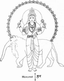 При этих словах об упоительном владыке Кришне каждый погрузился в воспоминания о его божественных играх и исполнился благоговения перед Луной и его небесным сиянием. Когда же внимание их вновь обратилось к предмету беседы, то перед ними уже стоял третий пандит - широкоплечий защитник Марса. Пронзительный взор его пылал отвагой, а страстные слова, обрушиваясь с внезапной силой, резали слух подобно ударам сабли: - О царь! Марс жесток сверх всякой меры и остротою подобен лезвию кинжала. На всякого, кто позволяет себе быть надменным и самонадеянным в служении ему, низвергает он свой гнев, истребляя всю его семью и собственность. Тех же, кто служит ему кротко и покорно, следуя положенным ритуалам, он благословляет на обретение богатства и исцеляет от болезней. Данный Марсу обет устраняет преграды и трудности, избавляет от болезней, долгов и врагов. Совершая обряд, облачитесь в красные одежды и украсьте себя красными цветами, и лишь один раз вкушайте в этот день пищу, приготовленную из продуктов с красным цветом, например, из спелых зерен пшеницы. Невысокого роста, коренастый и крепкий, широкий в плечах, но узкий в талии. Марс обладает внешностью юноши. Ликом он румян, а телом - смугл. Свирепым огнём горят его налитые кровью глаза. Рожденный из лона земли, красотой он подобен молнии, а в руке он держит копьё. Яркий как пламя, он полон силы и страсти, безрассудно смел и гневен, переменчив, но великодушен. Он совершенный оратор и кшатрий (воин), разжигающий пожары и наносящий раны. Марс обладает конституцией питта. Его цвет - кроваво-красный, сила его бьёт через край. Он облачён в красные одежды и украшен красными гирляндами. В теле человека Марс властвует над мышцами и костным мозгом. Из сторон света ему подчиняется юг, из дней недели - вторник, а из созвездий - Скорпион и Овен. Его металл - медь, а драгоценный камень его - коралл. Его называют Пожирателем недуга, Наносящим раны, Подобным вихрю. Благоприятствующим, Сыном Земли и Жестокооким, а ещё - Богом с красными руками и ногами. Оттого, что он светится, как раскалённый уголь, его зовут Ангарака. Знай, о царь, что наш город украшает один из древнейших храмов, посвящённых Марсу, - горделиво выпятив грудь, добавил пандит. - К тому же говорят, что Марс был рождён в окрестностях Уджаини, на берегах нашей прекрасной реки Кшипры. — Так поведай же мне историю рождения Марса, - потребовал царь. — Все вы уже слышали повесть о том, как праотец Дакша проклял своего зятя, владыку Луну. Дурная карма, порождённая этим проклятием, обратилась против самого Дакши, когда он посмел оскорбить другого своего зятя, всемогущего бога Шиву, отца Марса. Однажды Дакша решил принести искупительную жертву. На пышное празднество, устроенное близ слияния рек Ранги и Ямуны, Дакша (имя которого означает "сведущий" или "искусный") пригласил всех верховных богов, полубогов и мудрецов... всех, кроме собственного зятя - владыки Шивы, воплощения вселенского сознания. Услышав о предстоящем ритуале, супруга Шивы, Сати ("Правдивая"), пожелала во что бы то ни стало присутствовать на празднике. Шива пытался отговорить её, но Сати настояла на своём. Однако ей пришлось пожалеть о своём решении. На неё саму отец вовсе не обратил внимания, а супругу её, богу Шиве, нанес оскорбление, назвав его недостойным столь изысканного общества. В сердцах Сати сказала от