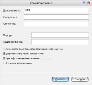 Создание нового пользователя: