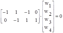 Система имеет множество решений. Пусть w3 = a, w4 = b; тогда w2 = a + b, w1 = b, W = (b, a + b, a, b). Например, если b = 0, a = 1, то W = (0, 1, 1, 0). Данная сеть Петри является сохраняющей. Проверка заключается в установлении равенства MW = M²W.