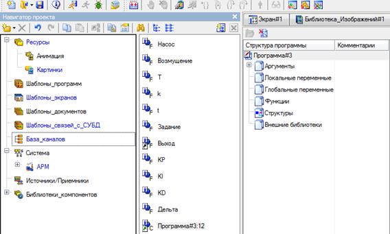 5 Для редактирования каналов объекта вызываем правой кнопки мыши контекстное меню базы каналов / создать компонент / канал FLOAT таким образом создаем 11 каналов 6 Из появившегося списка каналов последовательно переименовываем 1 канал на Насос. Аналогичным образом переименуем остальные каналы: 2 на Возмущение; 3 на T; 4 на k; 5 на t; 6 на Задание; 7 на Выход; 8 на KP; 9 на KD; 10 на KI; 11 на Дельта. Закрыть диалог Каналы объекта 7 В главном меню редактора базы каналов выбрать вкладку Создать компонент \ Программа. Появившеюся программу активируем двойным счелчком левой кнопки мыши.