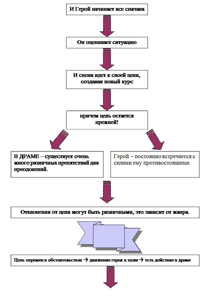 В пьесе не может быть героя, который бы не принимал участие в акции или реакции. Есть ФИНАЛЬНАЯ ситуация – совершение последнего поступка. В начальной ситуации герой действует, имея выбор. Герой действует так или иначе, потому что в начале герой не может оценить всю ситуацию сполна. Изначальная коллизия богата выбором. Главная возможность драматического автора – есть выбор характера. Поступок дает понять характер персонажа. Чем более богато произведение совершением поступков, тем ярче можно рассмотреть того или иного героя. ДЕЙСТВИЕ – это движение героя к истине, к цели. Действенный анализ пьесы – это предварительный анализ перед построением спектакля.