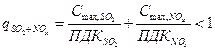 q = Результаты расчета записывают в табличной форме (см. табл. 2.2). Опасность загрязнения атмосферы газообразными веществами с учетом эффекта суммации при одновременном присутствии в атмосфере SO2 и NOx: