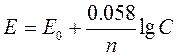 де Е0 – стандартний електродний потенціал метала; n – валентність іонів метала у розчині; С – концентрація іонів металу в розчині (в г-іон/л).
