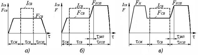 Основные циклограммы процессов контактной точечной сварки. Этапы образования соединений при точечной сварке
