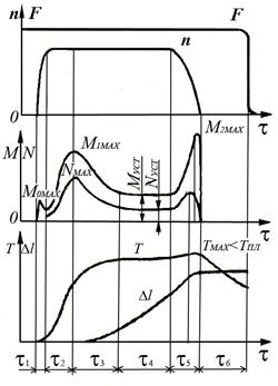 Внешне простой процесс сварки трением в действительности весьма сложен. Он представляет собой целый комплекс взаимосвязанных явлений: 1) интенсивное локализованное выделение тепла на поверхностях трения; 2) механическое внедрение частиц одной свариваемой детали в тело другой; 3) разрушение оксидных пленок и удаление их из стыка; 4) непрерывное образование металлических связей между поверхностями и немедленное разрушение этих связей; 5) быстрый нагрев и быстрое охлаждение малых объемов металла в условиях очень больших местных давлений; 6) упругопластическая деформация в микрообъемах; 7) наклеп и рекристаллизация; 8) взаимная диффузия; 9) интенсивное перемещение дислокаций и активация поверхностей контакта; 10) образование прочного соединения свариваемых заготовок тотчас же после прекращения их относительного движения. Циклограмма процесса сварки трением схватывания.