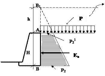 3. Давление сыпучего грунта на вертикальную подпорную стенку при отсутствии трения на задней гране.