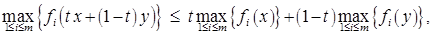 Если при и неравенство (1) выполняется как строгое, то функция называется строго выпуклой. Определение 2. Функция Очевидно, что любая строго выпуклая (строго вогнутая) функция является выпуклой (вогнутой) функцией, но не наоборот. Приведем некоторые операции допустимые в классе выпуклых функций. Теорема 1. Пусть все функции выпуклы на Доказательство. Пусть заданы векторы