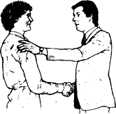Рис.32. Пожатие запястья. Рис.33. Пожатие локтя. выразить инициатор, используется левая рука, которая кладется на правую руку реципиента. Степень этой переполненности будет выражаться местом, на которое кладется рука. Например, если левая рука инициатора берется за локоть партнера (рис.33), то это выражает больше чувства, чем при обхватывании запястья (рис.32). Если рука кладется на плечо (рис.35), то это выражает больше чувства, чем когда она находится на предплечье (рис.34). Во-вторых, поведение левой руки инициатора означает нарушение интимной и особо интимной зон реципиента. В общем, обхватывание запястья и плеча возможно лишь между близкими друзьями, родственниками и лишь в том случае, если левая рука инициатора проникает только в интимную зону, не затрагивая особо интимной зоны. Прикосновение к плечу (рис.35) или к предплечью (рис.34) затрагивает особо интимную зону и может привести к сближению или прикосновению тел. Это возможно только между людьми, испытывающими особо эмоциональный подъем в момент пожатия. Если испытываемое чувство не является обоюдным, или если инициатор не имеет особых оснований для приветствия с применением обеих рук, то реципиент может почувствовать недоверие или подозрительность относительно намерений инициатора. Часто можно видеть, как политические деятели приветствуют своих избирателей с помощью этого жеста, или агенты по продаже приветствуют своих клиентов с помощью обеих рук, не осознавая, что это означает для них политическое самоубийство или загубленную сделку.