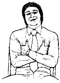 Рис.49. Скрещенные руки с вертикально поставленными большими пальцами. Жест с акцентированием больших пальцев используется также для выражения насмешки или неуважительного отношения к человеку, на которого указывают большим пальцем. Например, если муж, обращаясь к своему другу, указывает на свою жену большим пальцем собранной в кулак руки и говорит: "Эти женщины... они все одинаковы", то он провоцирует ссору со своей женой. В этом случае жест используется для того, чтобы выставить на посмешище несчастную женщину. Соответственно, указание большим пальцем действует раздражающе на большинство женщин, особенно, если это делают мужчины. Этот жест не характерен для женщин, хотя иногда они тоже используют его по отношению к людям, которые им не нравятся. Date: 2015-09-02; view: 478; Нарушение авторских прав |