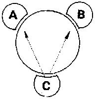 Рис.138. Открытая треугольная позиция, указывающая на ситуацию принятия в компанию третьего человека. Часто в начале разговора люди могут стоять в открытой треугольной позиции, но постепенно двое из них могут сформировать закрытую позицию, тем самым исключая третьего из своей компании (рис.139). Такое расположение сил в треугольнике должно подсказать третьему человеку, что следует оставить эту группу, чтобы не оказаться в неловком положении.