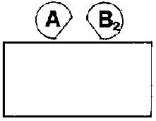 Рис.147. Угловое расположение. Позиция Делового Взаимодействия (В2). Когда два человека работают в соавторстве над какой-нибудь проблемой или проектом, они обычно занимают это положение. Это одна из самых удачных стратегических позиций для предъявления, обсуждения и выработки общих решений. Секрет, однако, заключается в том, чтобы В деликатно использовал эту позицию, не создавая у