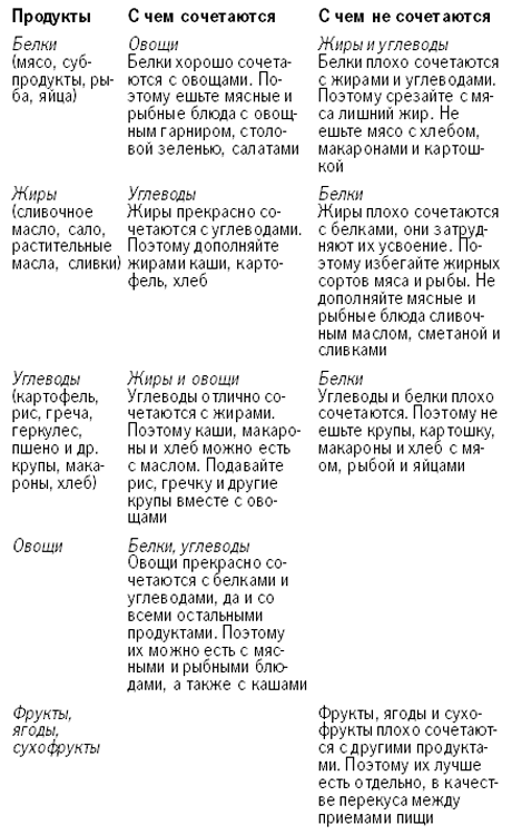 Как сочетать пищевые продукты