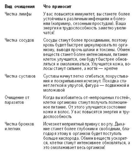 В предыдущих главах вы познакомились со многими способами очищения организма. Спрашивается: неужели надо делать что-то еще? Разве недостаточно того, что вы уже сделали или собираетесь делать? Конечно, главные органы жизнедеятельности организма – кишечник, печень, почки – вы уже почистили. Честь вам и хвала за это! Но шлаки добираются и до других уголков нашего организма. И если вы хотите быть чистенькими, свеженькими, молодыми и красивыми, надо их оттуда изгнать, верно? Где еще залегают шлаки? Во-первых, в лимфе – межклеточной жидкости, которая влияет на наш иммунитет. Во-вторых, в сосудах – если они забиты холестериновыми бляшками, то кровь с трудом циркулирует по организму. От этого ухудшается питание клеток и самочувствие тоже. Шлаки залегают также и в суставах (на это раз в виде солей). От этого они становятся неподвижными и скрипучими, это мешает свободно двигаться. Одно из любимых мест пребывания шлаков – бронхи и легкие, от этого возникает кашель и затрудняется дыхание. Ну и наконец, существуют паразиты, которые уютно пристраиваются к внутренностям организма, присасываются к ним, тянут оттуда соки и мешают жить. Зачем же таскать в себе всю эту грязь? Пора сделать генеральную уборку и изгнать засидевшихся постояльцев вон, пока они не захватили весь организм. Конечно, дополнительные чистки, о которых я расскажу в этой главе, имеет смысл делать лишь тогда, когда выводящие пути организма очищены. Тогда они будут работать в полную силу и смогут справиться с изгнанием «чуждых элементов». А если кишечник, печень и почки зашлакованы, то они не в состоянии энергично выводить «мусор» из организма. В таком случае вредные вещества просачиваются через стенки сосудов, поступают в кровь и начинают отравлять ее. Поэтому принимайтесь за дополнительные чистки только после того, как сделаете основные! Еще я хочу сказать, что все чистки, описанные в этой книге, основаны на применении натуральных веществ. То есть тех продуктов, которые мы едим в обычной жизни (только здесь они используются немного иначе). Ничего удивительного в этом нет! Великий врач древности Гиппократ сказал: «Еда должна быть лекарством, а лекарство должно быть едой». В русском языке есть похожие по смыслу слова: «Клин клином вышибают». Прежде чем рассказывать о дополнительных способах очищения, предлагаю вам провести тест. Он поможет узнать, насколько правилен ваш образ жизни.
