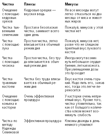 Итак, очищаться от паразитов или нет – решать вам. А чтобы облегчить это решение, предлагаю вам сравнить разные процедуры и оценить их плюсы и минусы.