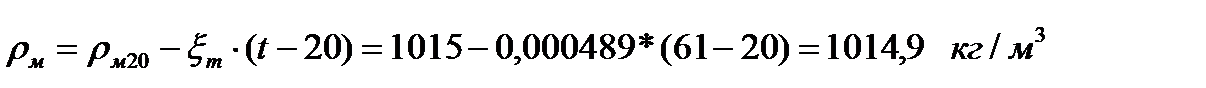 где Vр – объем мазута в резервуаре, Vр=1400 м3 (считаем, что резервуары заполнены полностью); rмср – плотность мазута при средней температуре мазута в резервуаре: