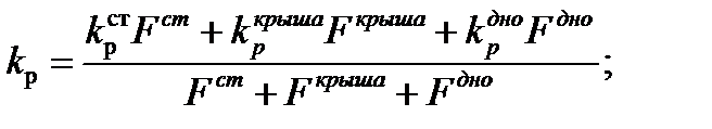 kр – усредненный коэффициент теплопередачи через стенку резервуара в окружающую среду, Вт/м2×К. Цилиндрический резервуар имеет три поверхности охлаждения – стенка, крыша и дно, – каждая из которых имеет свой коэффициент теплопередачи. Усредненный коэффициент теплопередачи находится по формуле: