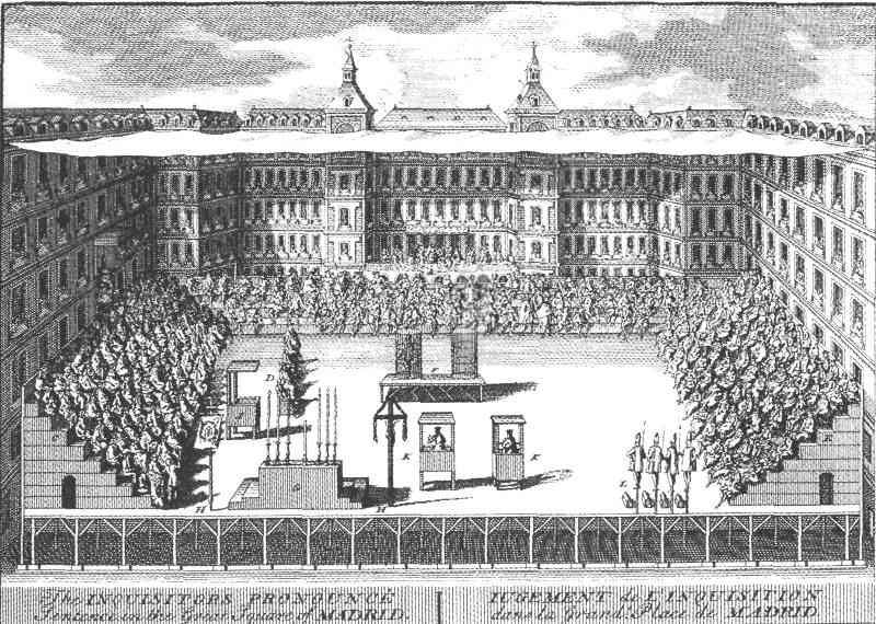 Июня 1680 года в Мадриде было проведено аутодафе в присутствии испанского короля Карла II и его юной невесты. Заживо или символически был сожжен пятьдесят один человек.