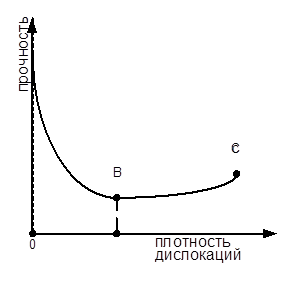 Рис. 1.5. Зависимость прочности металла от плотности дислокаций при лесе дислокаций ВС