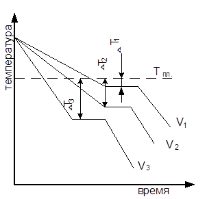 Рис. 1.8. Кривые охлаждения при кристаллизации металла