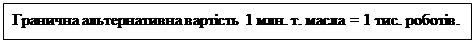 Тема 3 Питання 4: Існування проблеми вибору означає, що використання певних ресурсів у виробництві одного товару спричиняє за собою втрату можливостей їх використання в будь-якому іншому виробництві (інших товарів). Альтернативна вартість - цевартість, виміряна з точки зору втраченої можливості займатися найкращою з доступних альтернативних діяльностей, що вимагає того ж часу і тих же ресурсів. Альтернативна вартість -це те, від чого необхідно відмовитися, щоб отримати бажане. Проілюструємо проблему вибору на умовному прикладі. Для цього прикладу існує декілька допущень: 1. Економіка функціонує в умовах повної зайнятості і досягає повного обсягу виробництва. Під повною зайнятістю розуміють використання всіх придатних для цього ресурсів (не простоює земля, обладнання, немає безробіття). Повний обсяг виробництва передбачає, що ресурси, які застосовуються, використовуються найбільш ефективним способом. 2. Ресурси виробництва, є постійні як по кількості, так і за якістю. 3. Технологія виробництва є постійною (незмінною). 4. Передбачається, що в економіці виробляється 2 види товарів: товар виробничого призначення (роботи) і споживчий товар (вершкове масло).